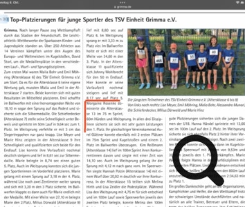 z.B. Trainings- und Wettkampfkleidung / Turnschuhe / Spikes / Spenden für die Teilnahme an Wettkämpfen…..